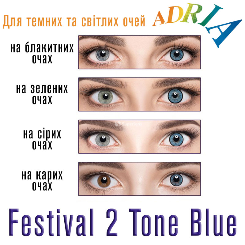 Купить цветные линзы Adria Festival 2 Tone Blue можно онлайн на superlens. Мы обеспечиваем быструю доставку «Новой почтой» в Харьков, Чернигов, Николаев, Черкассы, Кропивницкий и Полтаву.
