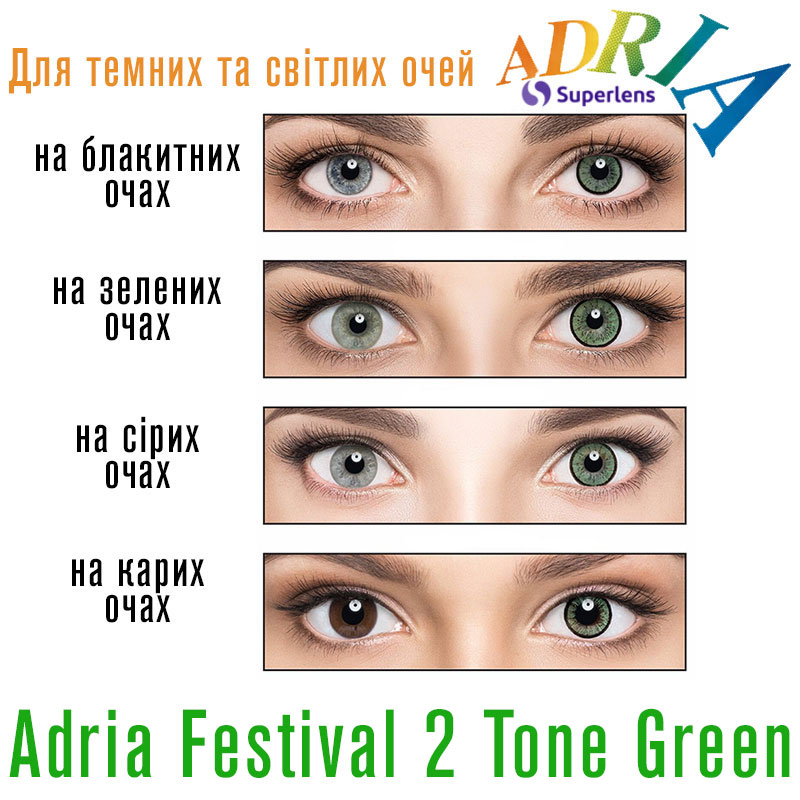 Купить цветные линзы Адрия Фестиваль 2 Тон Грин можно онлайн на superlens. Мы обеспечиваем быструю доставку «Новой почтой» в Одессу, Днепр, Запорожье, Кривой Рог, Херсон и Мариуполь.