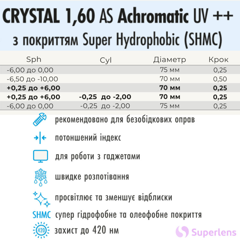 Характеристики Comfort Line Crystal 1.60 AS Achromatic