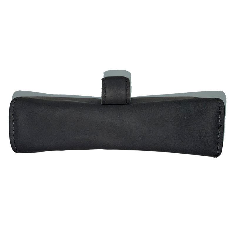 - Надежная клипса: Металлическое крепление, обтянутое кожей, мягко, но плотно фиксирует футляр на козырьке.
