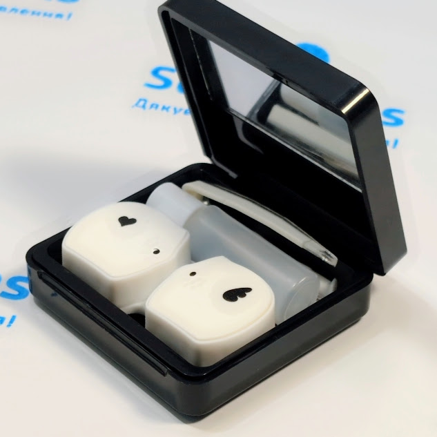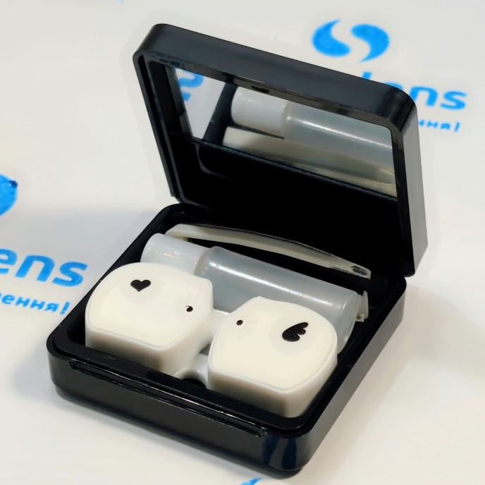 Дорожный набор для контактных линз К-1906 (черный, с рисунком иероглифов и сердец) К-1906 — стильный и компактный дорожный набор, созданный для удобного и безопасного ухода за контактными линзами в любых условиях.Корпус выполнен в черном глянцевом цвете с оригинальными рисунками — иероглифы и сердца, что придает аксессуару современный и элегантный вид.