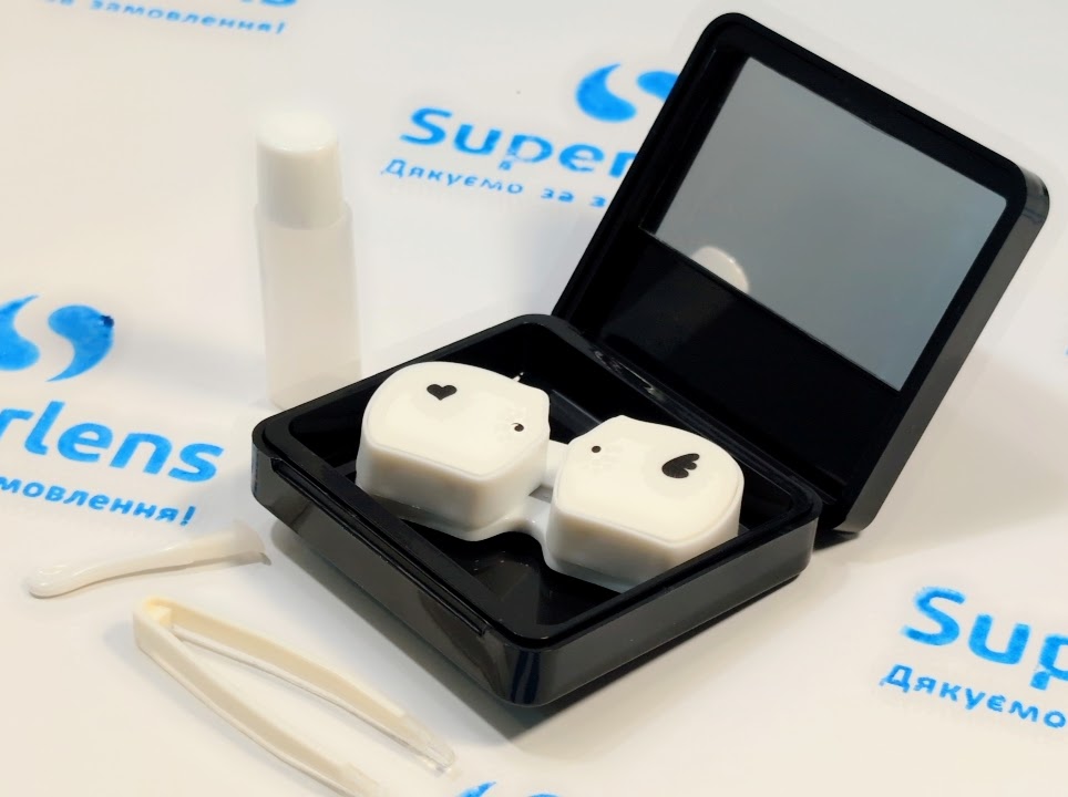 ✅ Зеркало занимает половину внутренней поверхности — комфортно для надевания и снятия линз.