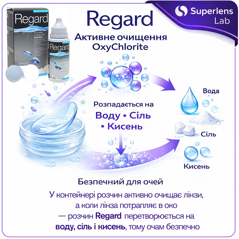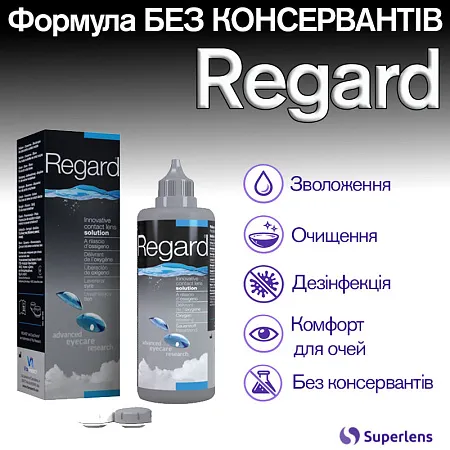 Regard Contact Lens Solution - это стерильный изотонический буферный раствор, содержащий- очищенную воду,