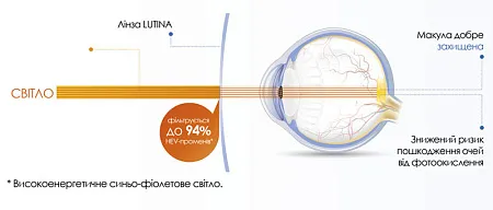 Lutina — уникальный материал, который избирательно блокирует вредную часть коротковолнового света. Линзы защищают глаза от 100% ультрафиолета, помогают поддерживать здоровье сетчатки и сохранять уровень лютеина — важного пигмента, который отвечает за чёткое и естественное зрение.
