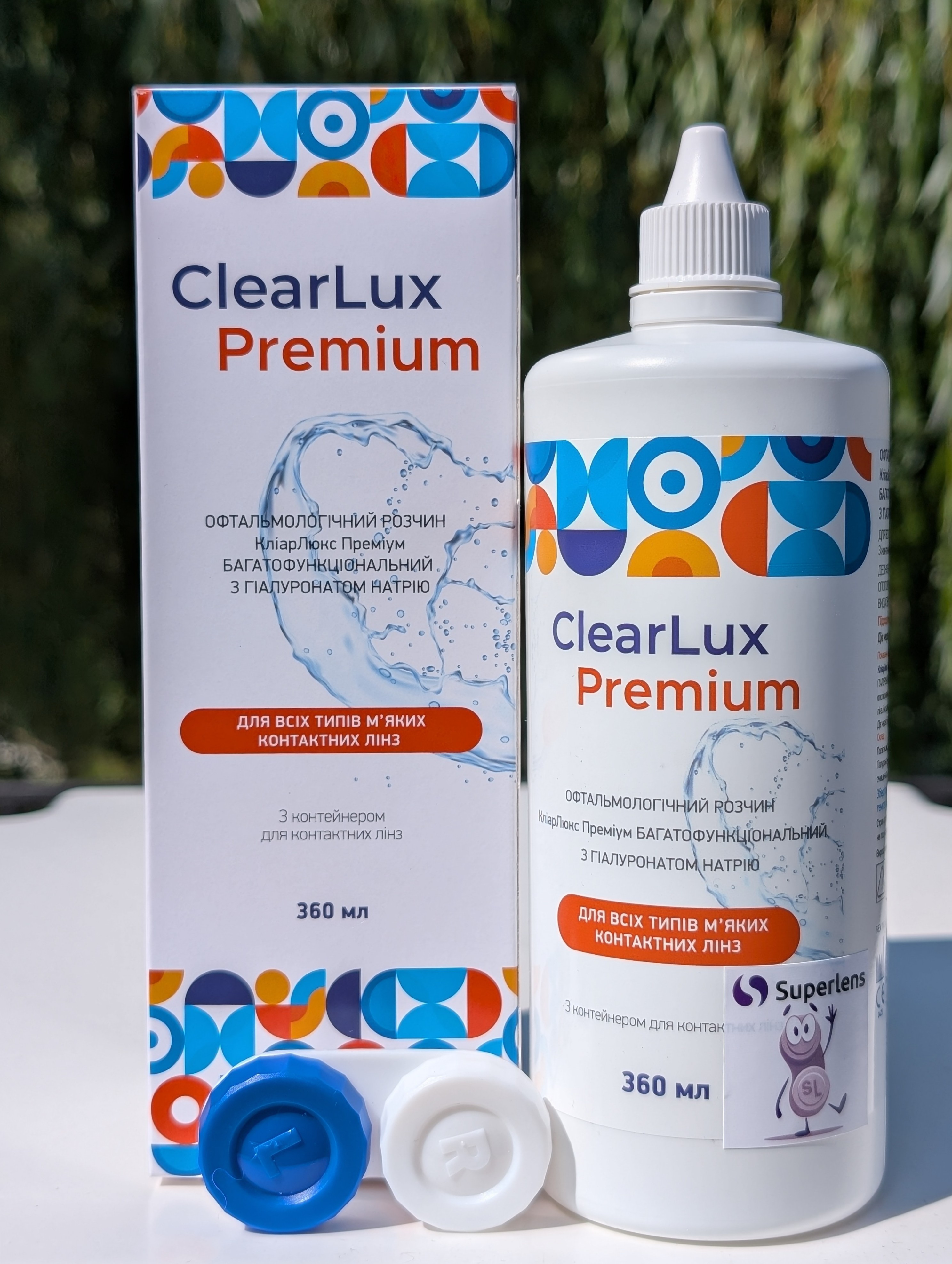 ClearLux Premium – це багатофункціональний розчин з гіалуронатом натрію для дезінфекції, захисту, очищення, ополіскування та зволоження всіх типів м’яких контактних лінз. Підходить для чутливих очей.Доступний в об’ємах 100 мл та 360 мл.