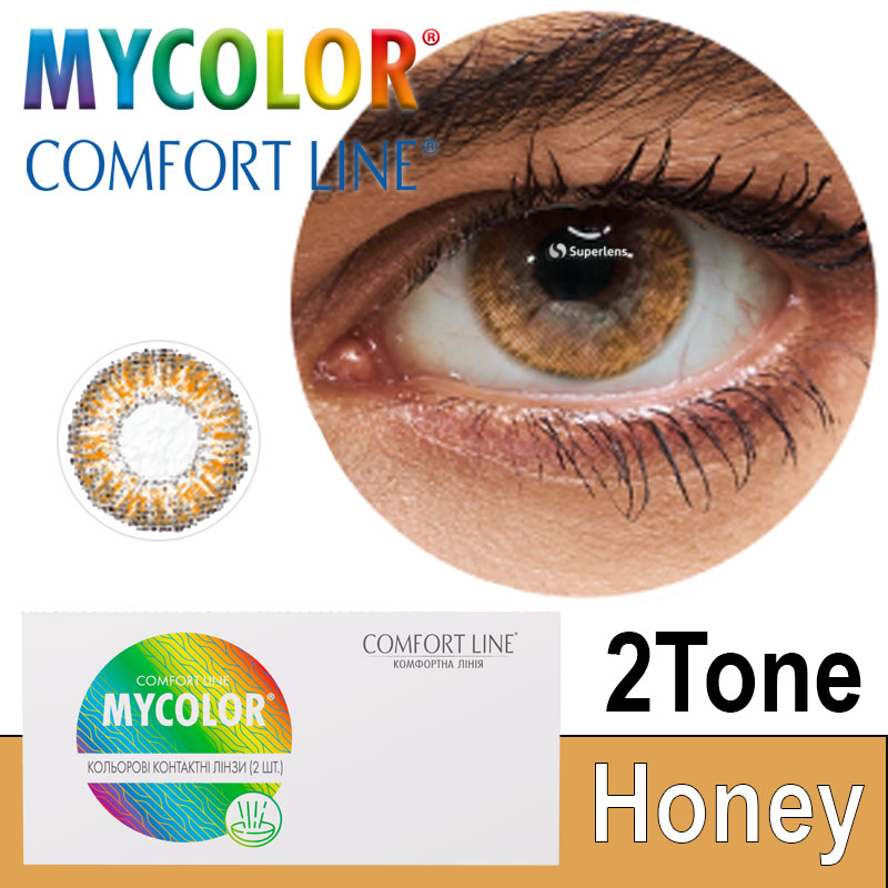 Замовити кольорові контактні лінзи МайКолор Ту Тон Хані від Comfort Line від Interojo з теплим насиченим медовим кольором можна онлайн на сайті superlens. Доставка лінз: з доставкою кур'єрською службою «Нова пошта» у Кривий Ріг, Чернігів, Миколаїв, Дніпро, Львів, Харків та інші міста України на вказане відділення.