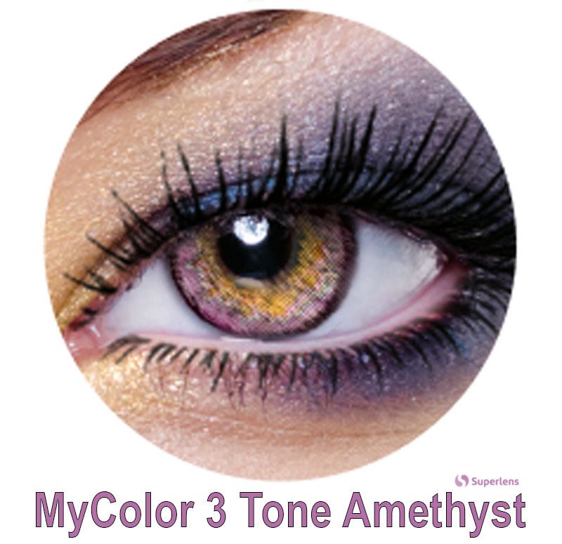Замовити кольорові контактні лінзи МайКолор Трі Тон Аметист від Comfort Line від Interojo з розкішним фіолетовим кольором можна онлайн на сайті superlens. Доставка лінз: з доставкою кур'єрською службою «Нова пошта» у Київ, Дніпро, Одеса та інші міста України на вказане відділення.