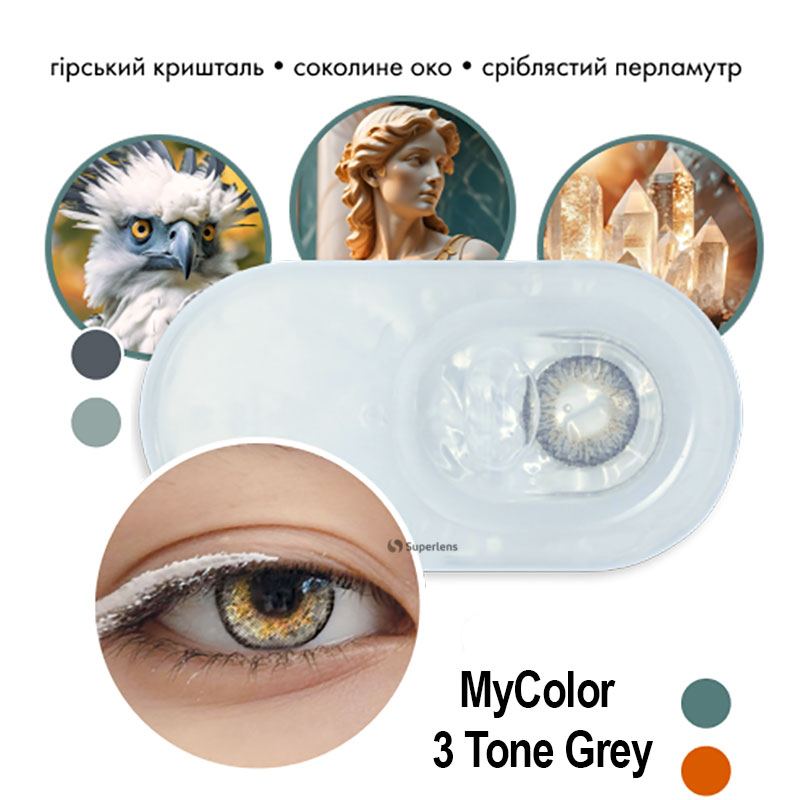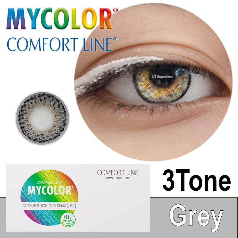 Замовити кольорові контактні лінзи МайКолор Трі Тон Грей від Comfort Line від Interojo з новим насиченим сірим кольором можна онлайн на сайті superlens. Доставка лінз: з доставкою кур'єрською службою «Нова пошта» у Кривий Ріг, Чернігів, Миколаїв, Дніпро, Львів, Харків та інші міста України на вказане відділення.