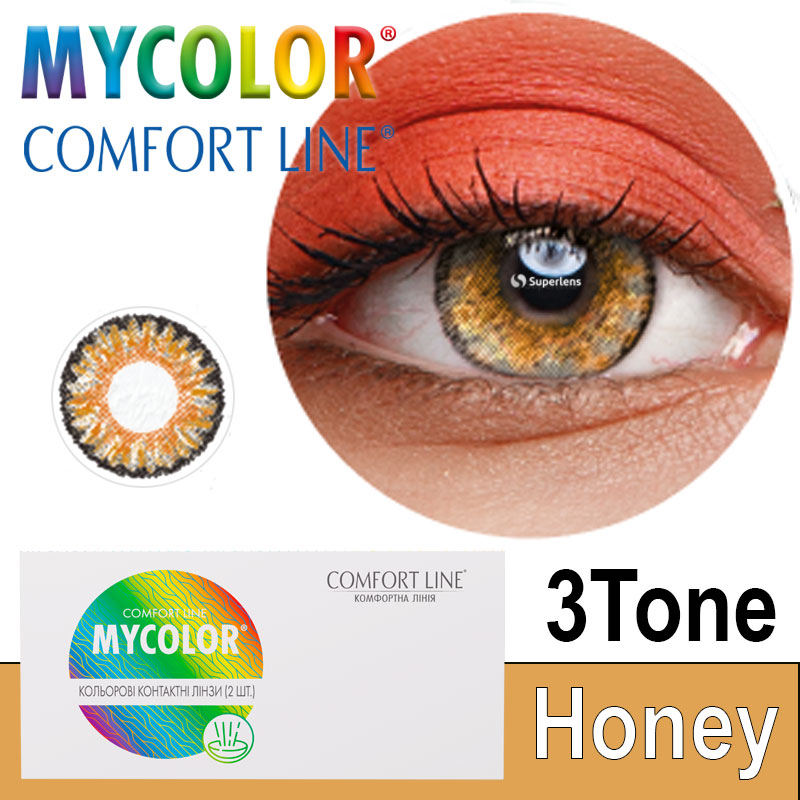 Замовити кольорові контактні лінзи МайКолор Трі Тон Хані від Comfort Line від Interojo з яскравим насиченим медовим кольором можна онлайн на сайті superlens. Доставка лінз: з доставкою кур'єрською службою «Нова пошта» у Кривий Ріг, Чернігів, Миколаїв, Дніпро, Львів, Харків та інші міста України на вказане відділення.